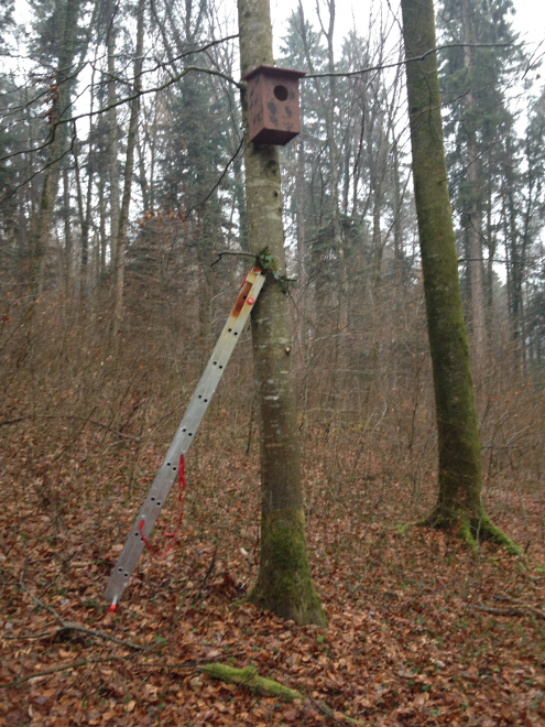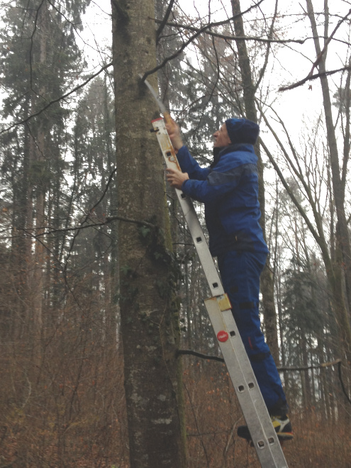 Einige unserer Waldkauzkästen waren in die Jahre gekommen und in einem dem entsprechend schlechten Zustand. Sie mussten deshalb ersetzt werden. Ein Job nur für Schwindelfreie...