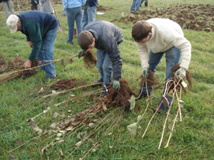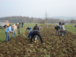 Die Sträucher liegen für die Pflanzaktion bereit. Es gibt viel zu tun...