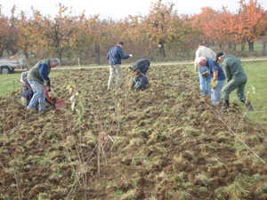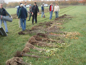 Fachmännisch werden die Pflanzen vorbereitet und für die Pflanzung bereit gelegt.