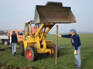 Die Gemeinde stellte ein Fahrzeug inklusive Fahrer zur Verfügung. Damit wurden die Pfähle für den ca. 236m langen Zaun gesetzt.