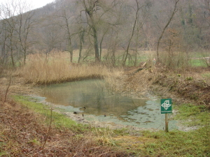 Ein Teil des Schilfs wurde gemäht und die Sträucher rings um den Weiher wieder