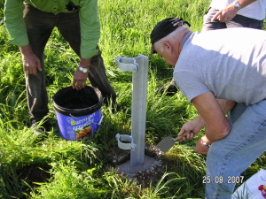 Einbetonieren der neuen Halterung.