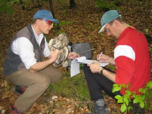 kontrollieren. Die beiden Jungkäuze waren rund 19 Tage alt, für das Alter