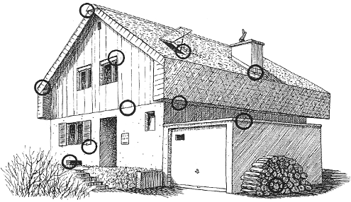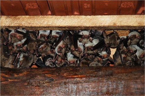 Unsere Fledermäuse gebären ihre Jungtiere in ihren Sommerquartieren, den sogenannten Wochenstuben, in welchen sich mehrere Weibchen (teilweise auch hunderte von Weibchen) zusammenschliessen. Viele dieser Wochenstuben befinden sich in oder an Gebäuden. Die folgenden Grafiken und Fotos zeigen, wo Wochenstuben gefunden werden können: